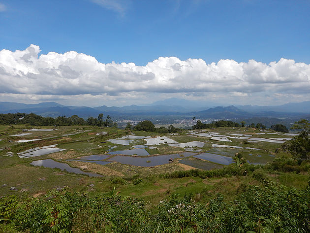 The city centre is only small but you can find really tasty food, which is so different from anywhere else in Sulawesi. One of the most popular meals to eat is called pa’piong. Pa’piong is pork, chicken or fish cooked in a bamboo tube over an open fire for one hour. Tari Travel included this traditional meal for us on our tour. It was served at a beautiful spot in a local Torajan village. We got to try pa’piong manuk, which is chicken with red rice and ferns as vegetables. It was the perfect way to finish off our day exploring the countryside in Toraja. That day we had walked from the city, across a bridge and towards the mountains. There were some astonishing views.
