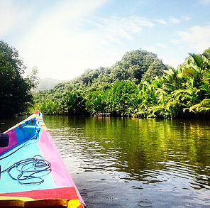 After a short boat ride we stopped at an opening through some trees. As soon as I stepped off the boat my eyes were blinded with an astonishing view of mountains stood amongst rice fields and ponds. The light shone down and created a beautiful reflection of the landscape in the water. We set off on our trek through the rice fields, which I’ve walked through many before, but walking through these rice fields was different. We were walking towards these beautiful mountains that looked like green giants and made me feel like I was a miniature toy. We walked past locals and their homes, along tiny paths and over streams. We saw how they lived using only natural resources. They built bridges made from bamboo and ate the freshest ingredients. This village is so big, however has very few people living there. You can really feel how tiny you are in the world because of this. We trekked past caves and around mountains. I truly felt like I was lost in the middle of nowhere, where technology was a distant memory.